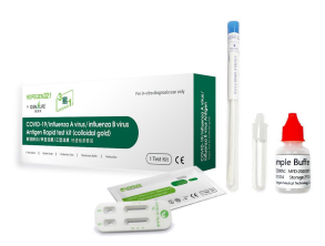 The COVID-19/influenza A virus/influenza B virus Antigen test kit (colloidal gold) is a simple, rapid, and accurate tool for in vitro qualitative detection of these viruses in human throat swabs, nasopharyngeal swabs, and saliva samples.There is no need for instruments, and the results can be detected in 20 minutes